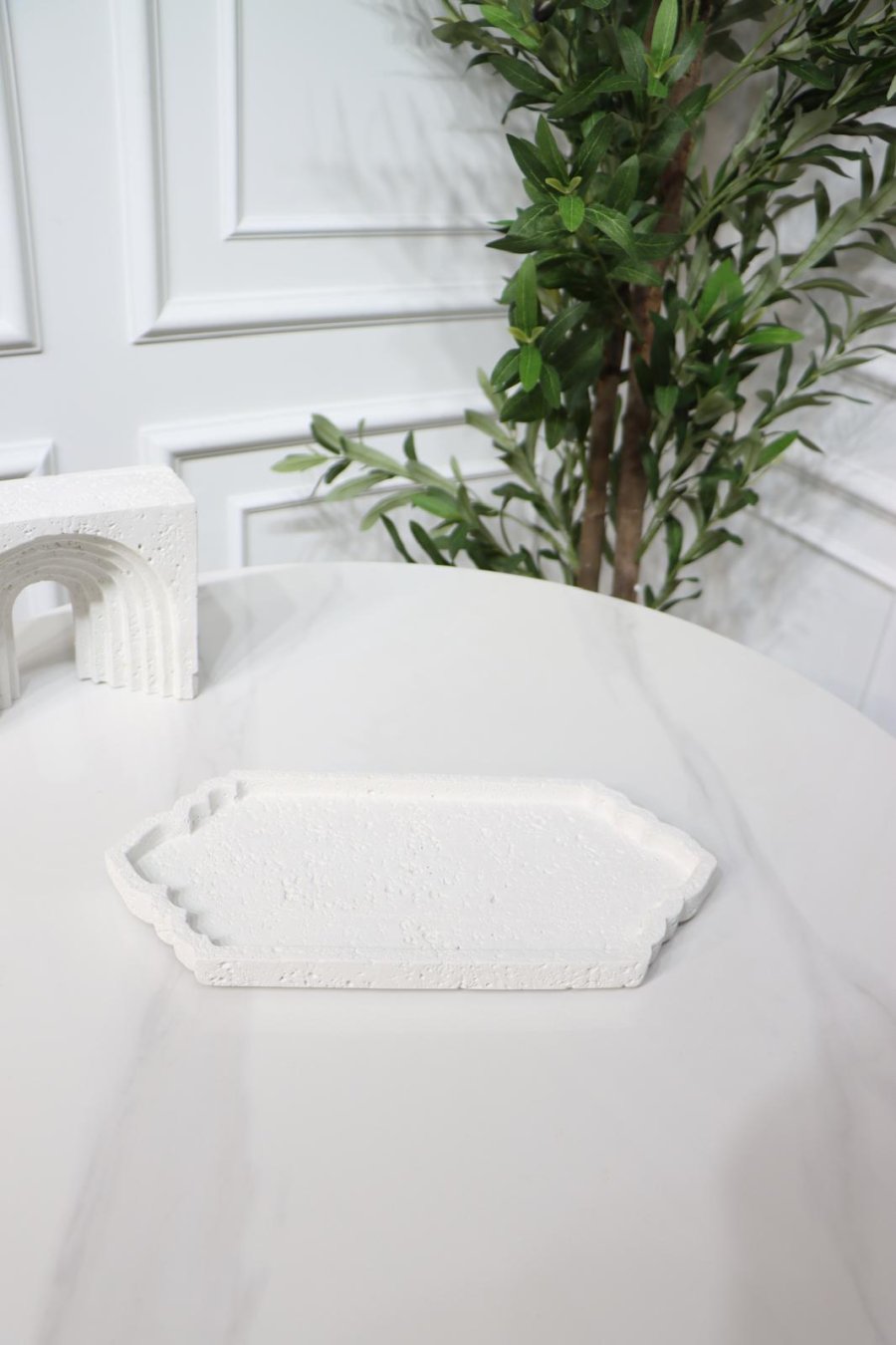 صينية بيضاوي شكل اسلامي 30*13سم جبص ابيض 4K= SM212/13