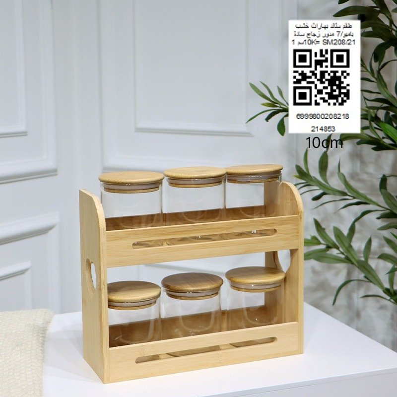 طقم ستاند بهارات خشب بامبو/7 مدور زجاج سادة 10سم 1K= SM208/21