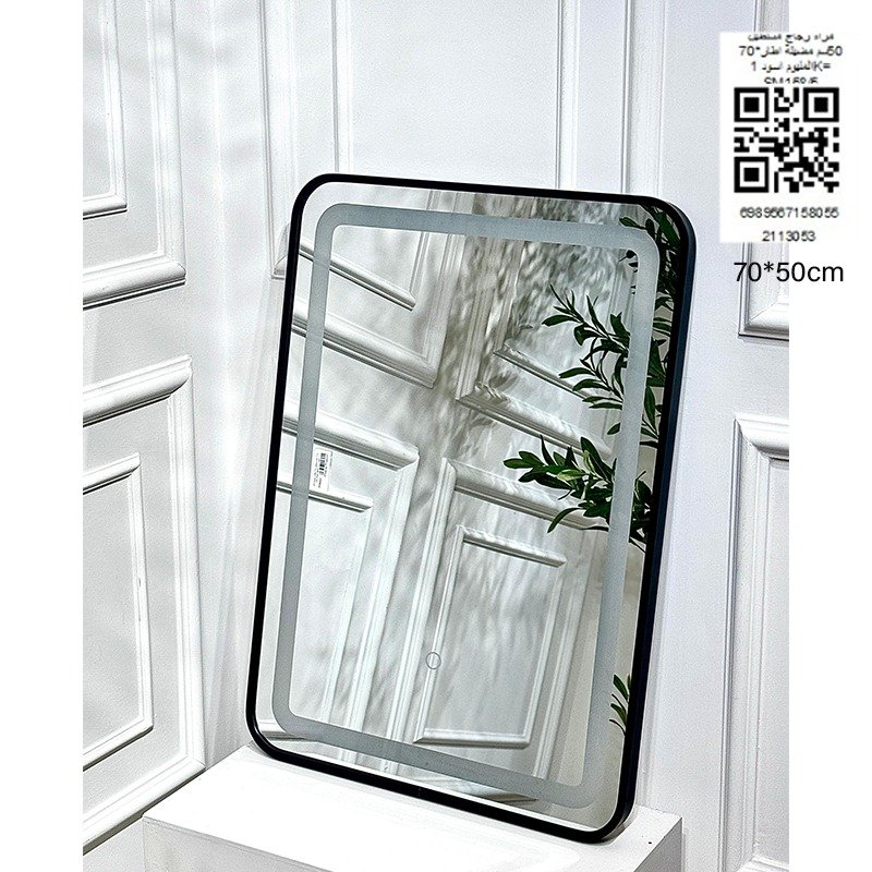 مراه زجاج مستطيل 70*50سم مضيئة اطار المنيوم اسود 1K= SM158/5