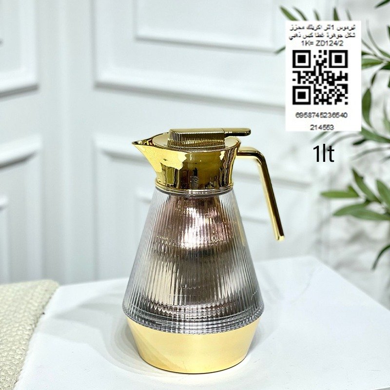 تيرموس 1لتر اكريلك محزز شكل جوهرة غطا كبس ذهبي 1K= ZD124/2