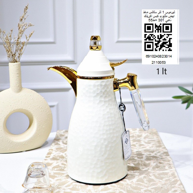 تيرموس 1 لتر ستانلس ماط ابيض مثلج يد كبس اكريلك ذهبي 301 +ط55