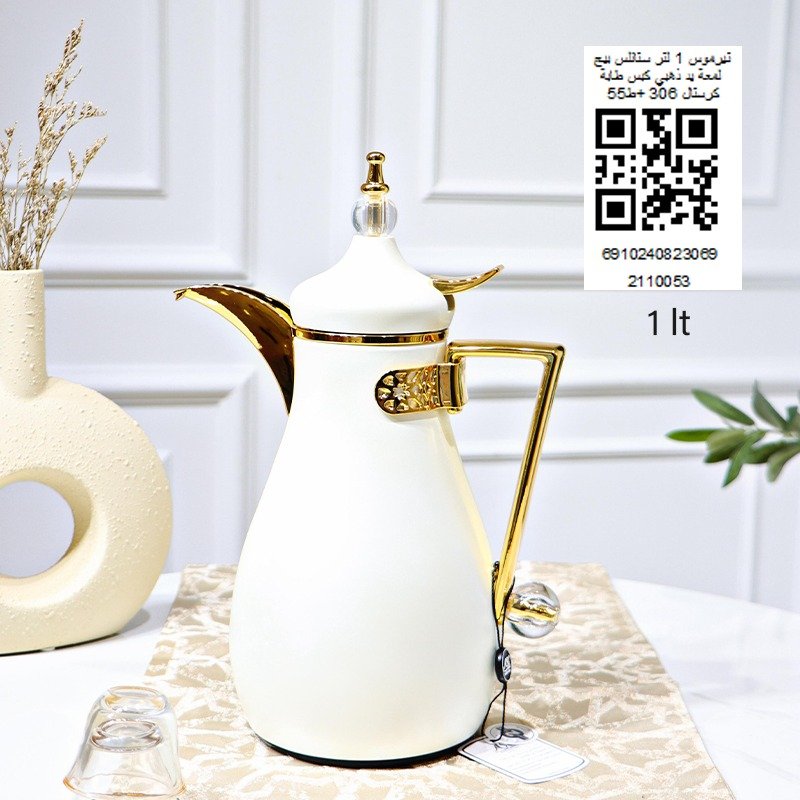 تيرموس 1 لتر ستانلس بيج لمعة يد ذهبي كبس طابة كرستال 306 +ط55