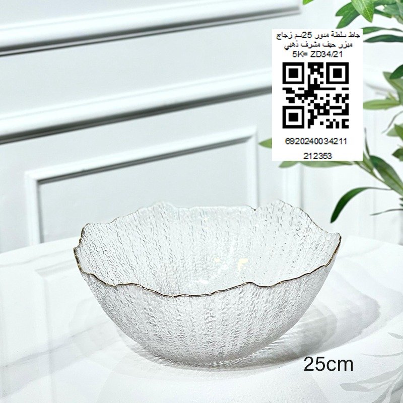 جاط سلطة مدور 25سم زجاج مبزر حيف مشرف ذهبي 5K= ZD34/21