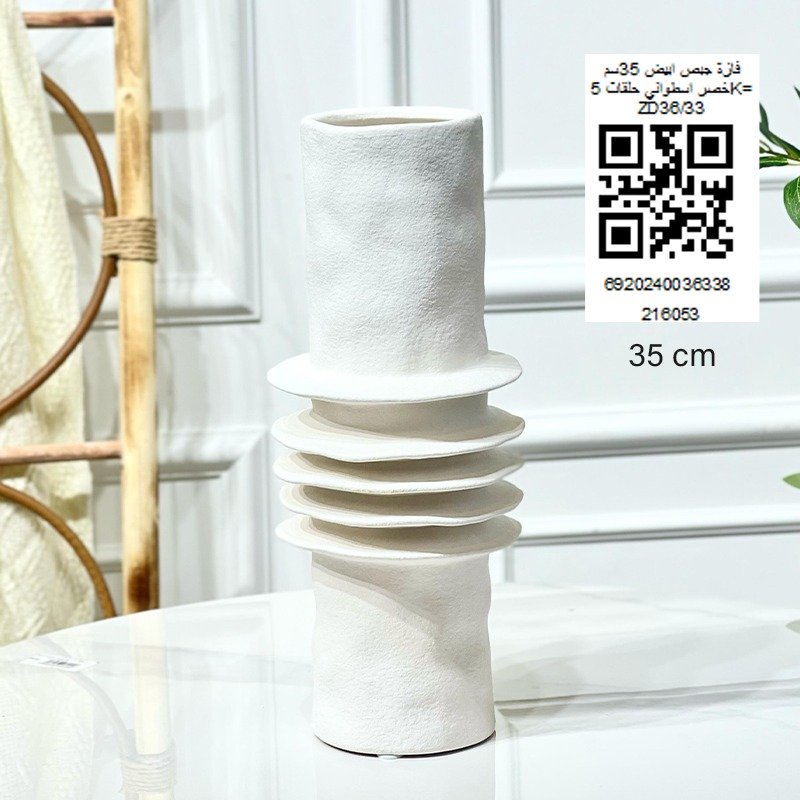 فازة جبص ابيض 35سم خصر اسطواني حلقات 5K= ZD36/33