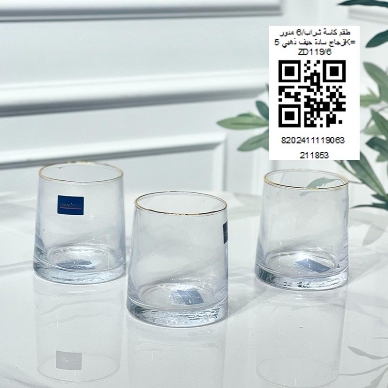طقم كاسة شراب/6 مدور زجاج سادة حيف ذهبي 5K= ZD119/6