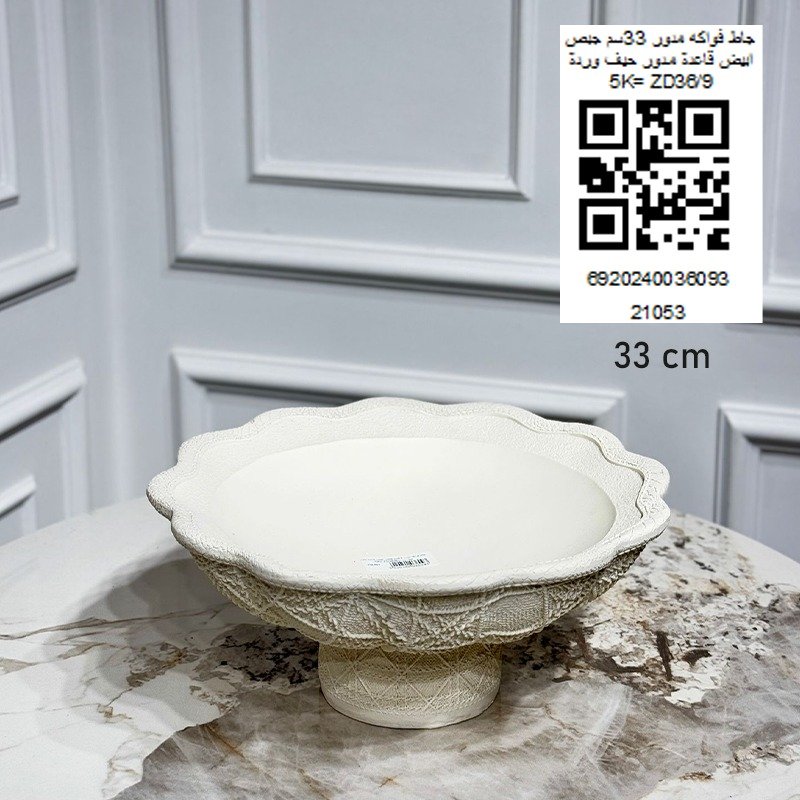 جاط فواكه مدور 33سم جبص ابيض قاعدة مدور حيف وردة 5K= ZD36/9