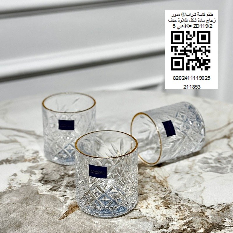 طقم كاسة شراب/6 مدور زجاج سادة شكل بقلاوة حيف ذهبي 5K= ZD119/2