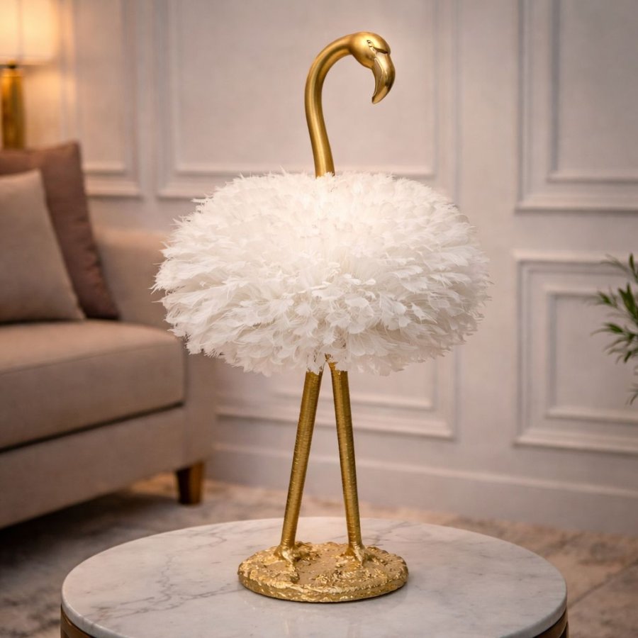 سهارة 63سم شكل فلامنجو ذهبي شيد ريش ابيض SM113/12 =ط4س