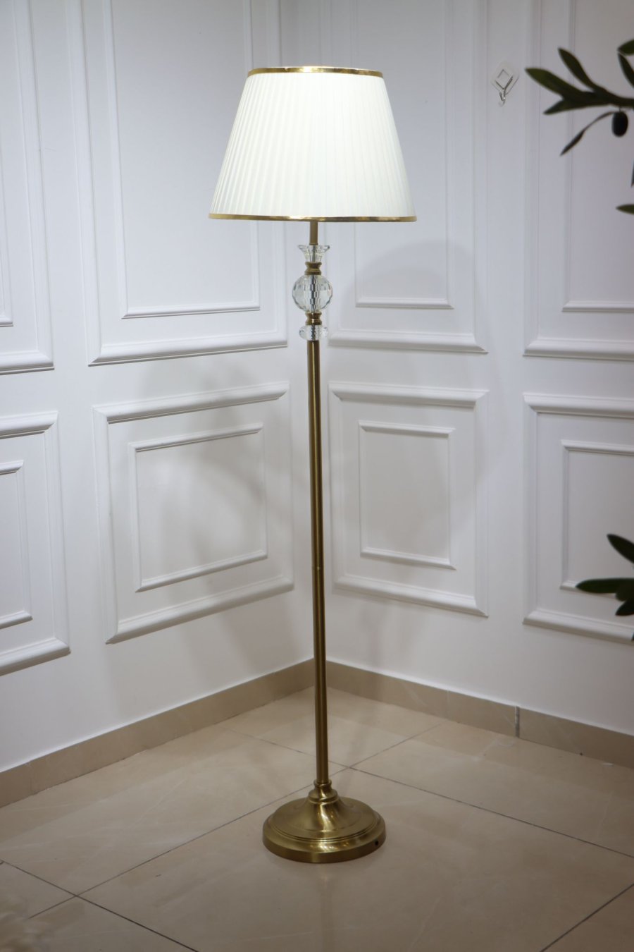 سهارة ديكور عمود حديد ذهبي كرستال قاعدة مدور ذهبي شيد ابيض اطار ذهبي SM113/19 =ط4س