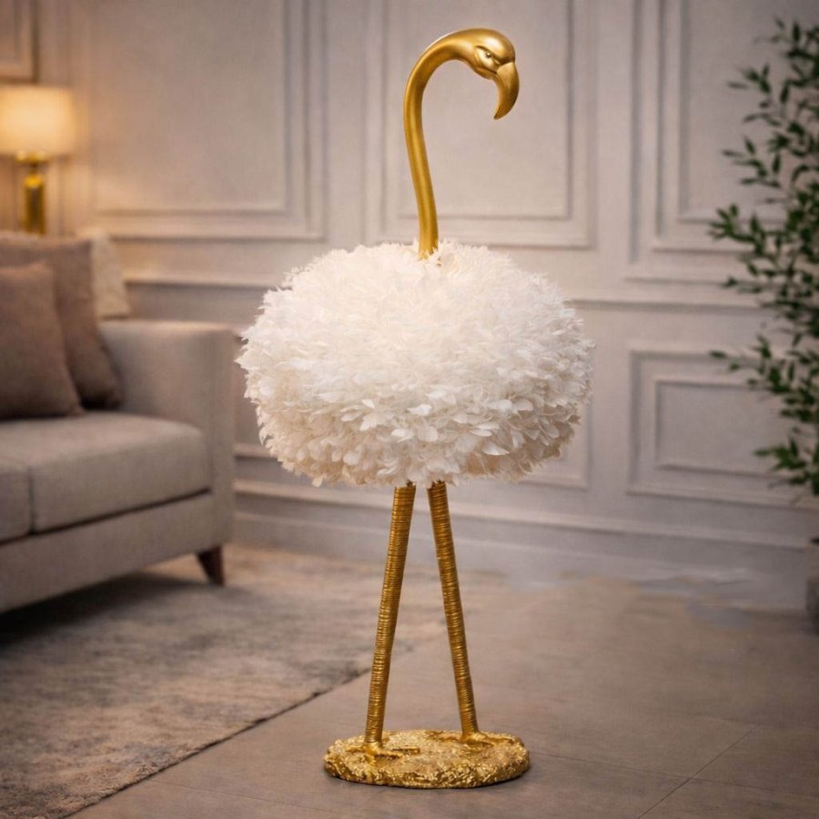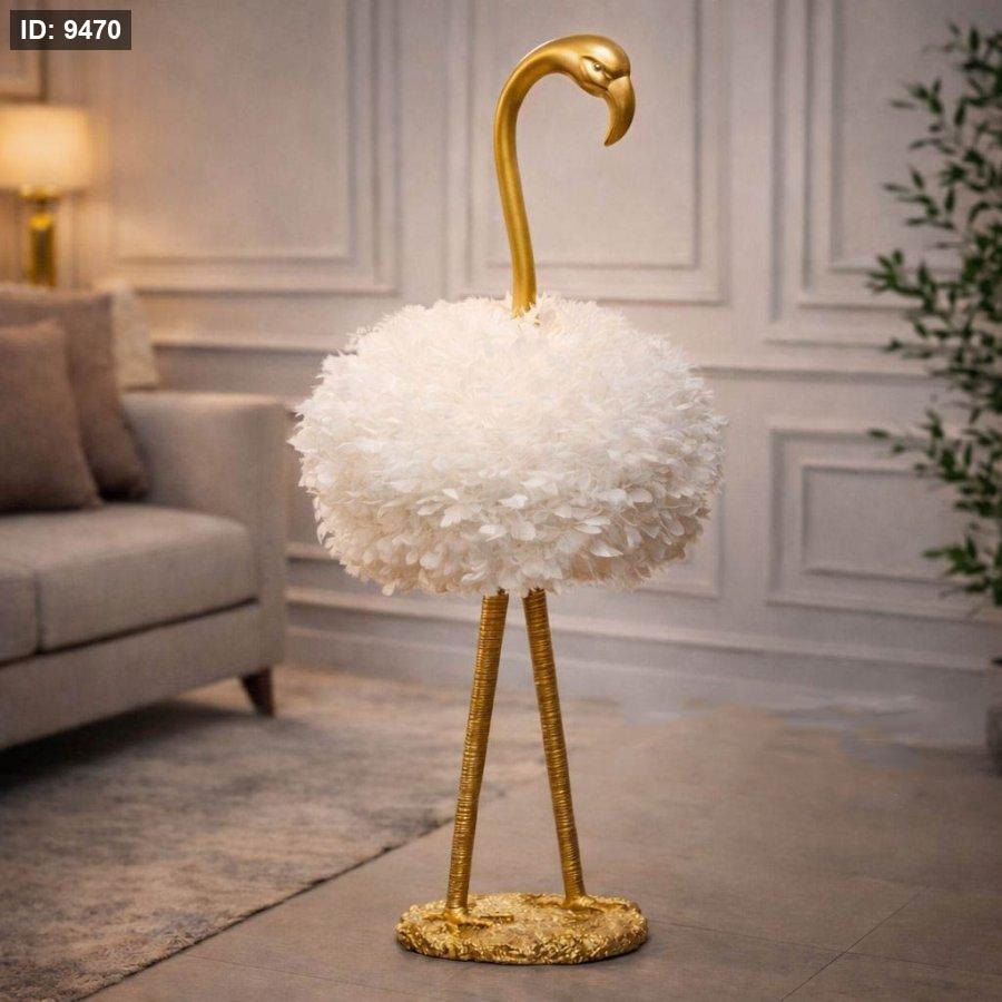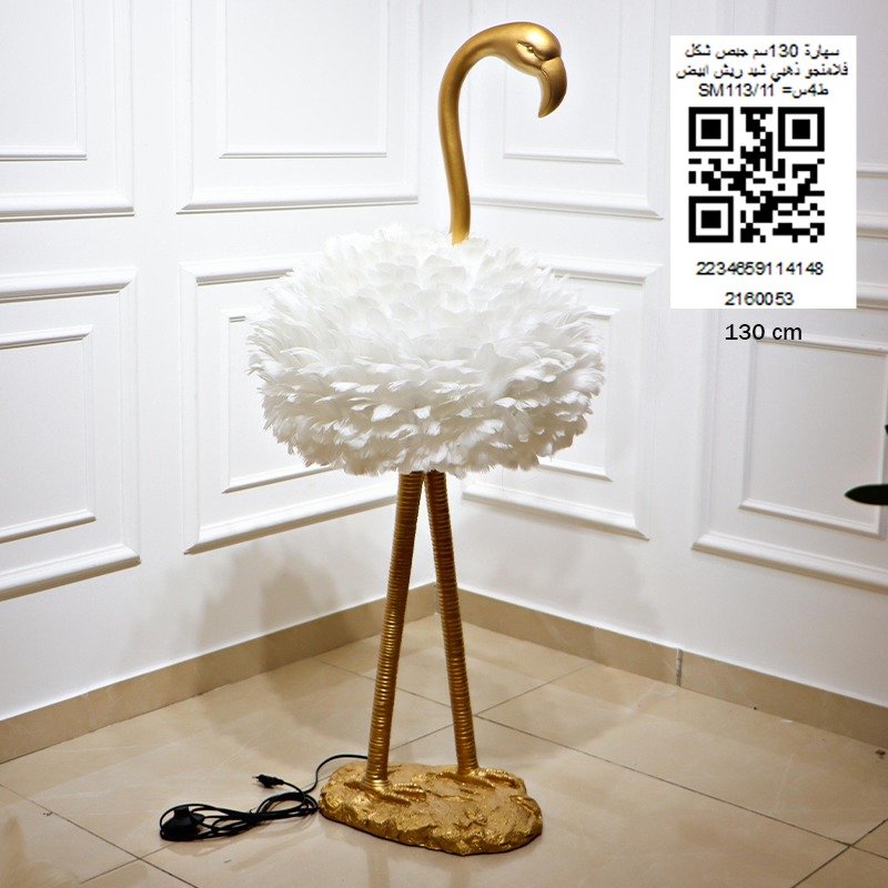 سهارة 130سم جبص شكل فلامنجو ذهبي شيد ريش ابيض SM113/11 =ط4س