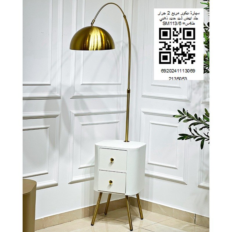 سهارة ديكور مربع 2 جرار جلد ابيض شيد حديد ذهبي SM113/6 =ط4س