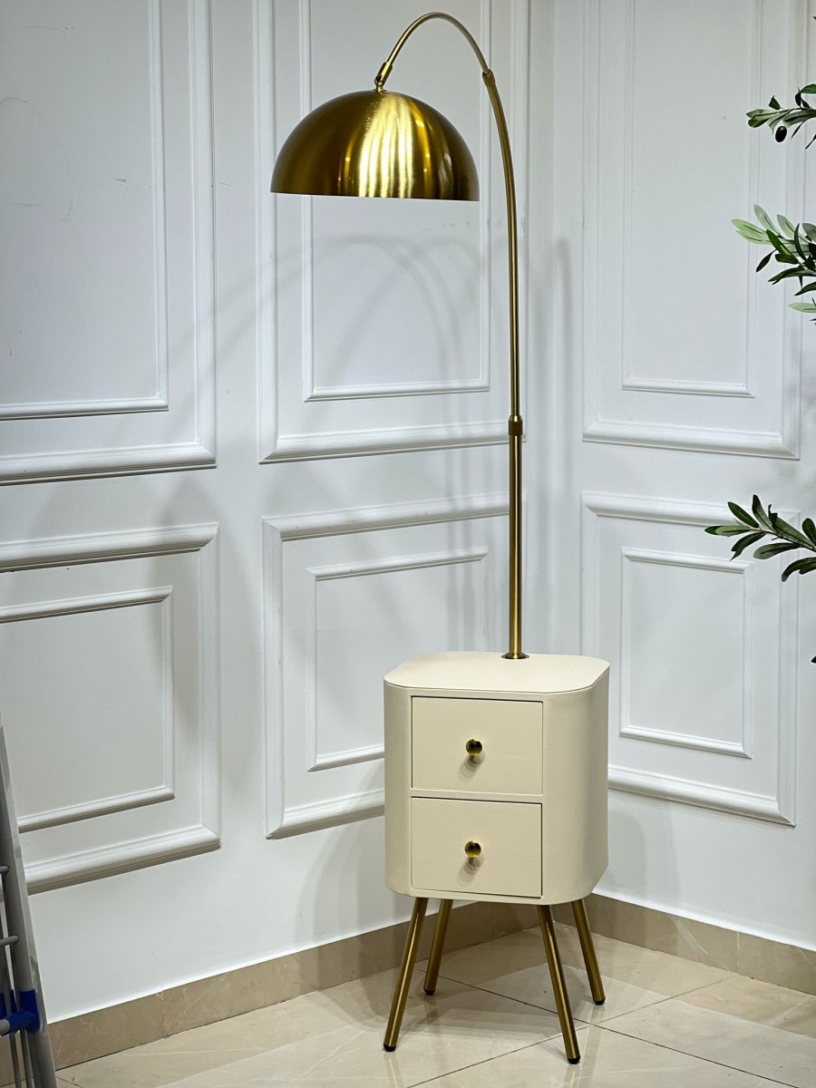سهارة ديكور مربع 2 جرار جلد بيج شيد حديد ذهبي SM113/7 =ط4س