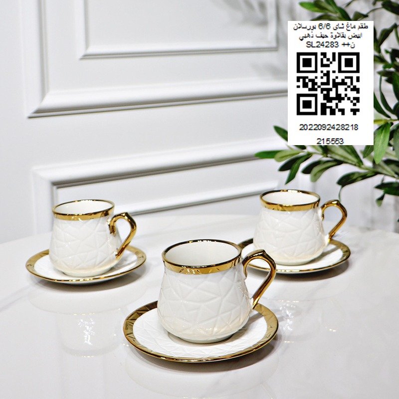 طقم ماغ شاي 6/6 بورسلان ابيض بقلاوة حيف ذهبي ع.ك اخضر SL24283 ++ن