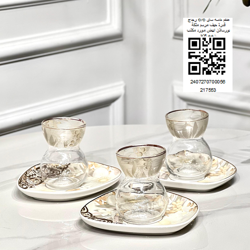 طقم كاسة شاي 6/6 زجاج قدرة حيف مرسم متكة بورسلان ابيض مورد مكتب K5 ++ن