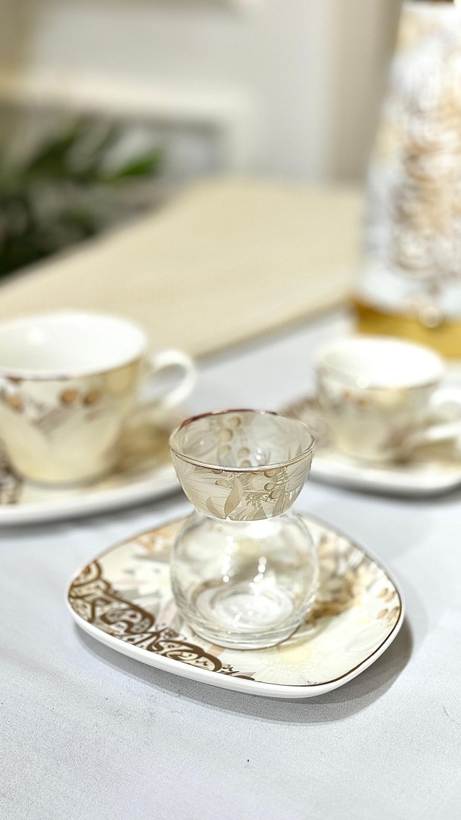 طقم كاسة شاي 6/6 زجاج قدرة حيف مرسم متكة بورسلان بيج مورد مكتب K6 ++ن
