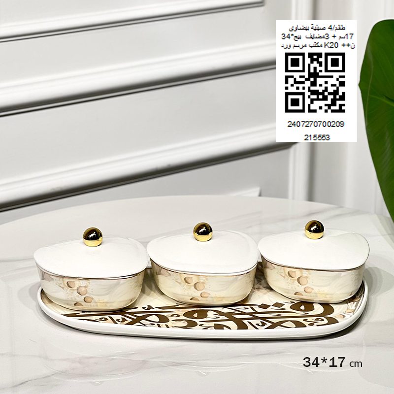 طقم/4 صينية بيضاوي 34*17سم + 3مضايف بيج مكتب مرسم ورد K20 ++ن