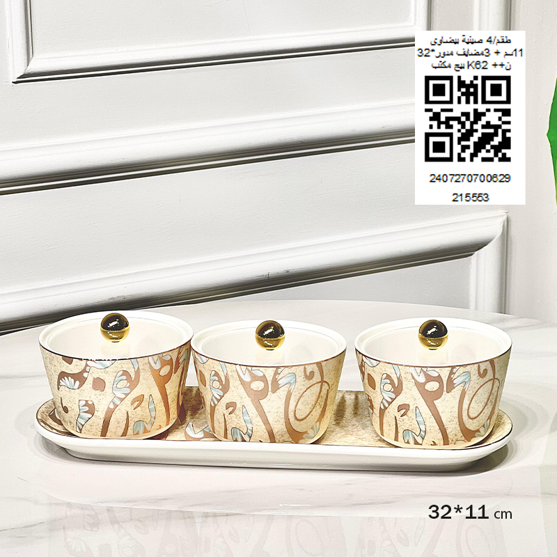 طقم/4 صينية بيضاوي 32*11سم + 3مضايف مدور بيج مكتب K62 ++ن