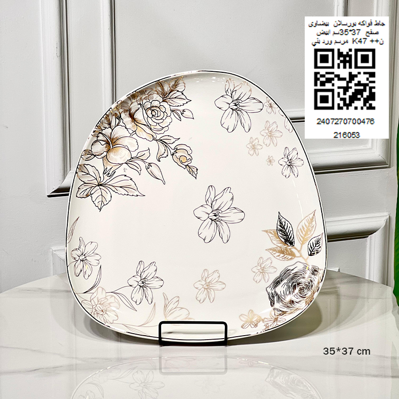 جاط فواكه بورسلان بيضاوي صفح 37*35سم ابيض مرسم ورد بني K47 ++ن