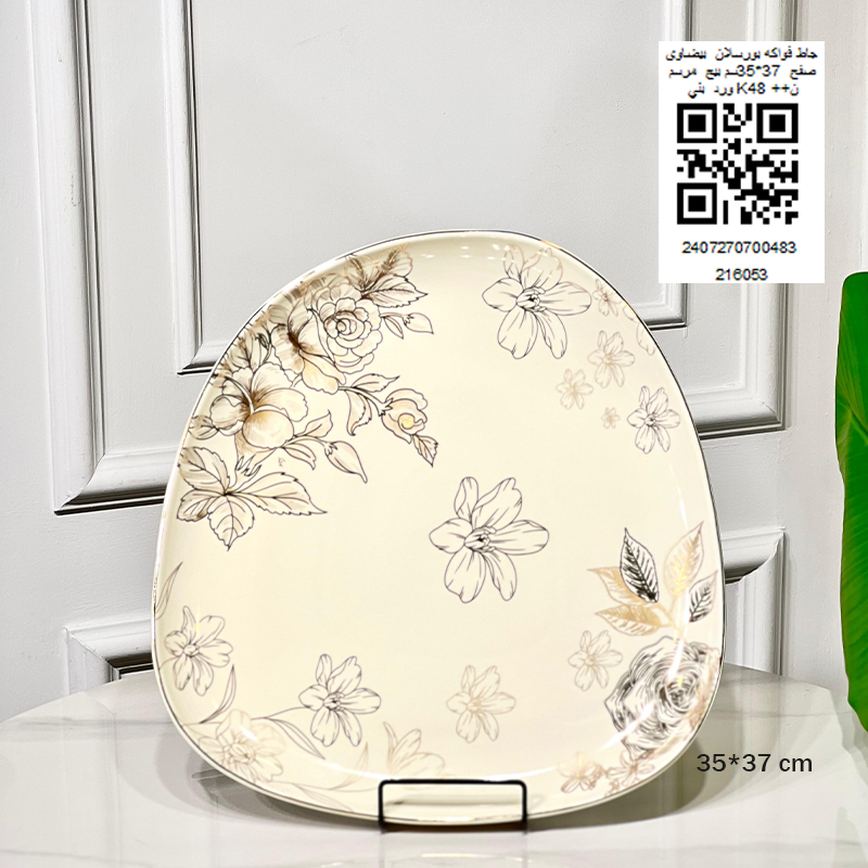 جاط فواكه بورسلان بيضاوي صفح 37*35سم بيج مرسم ورد بني K48 ++ن