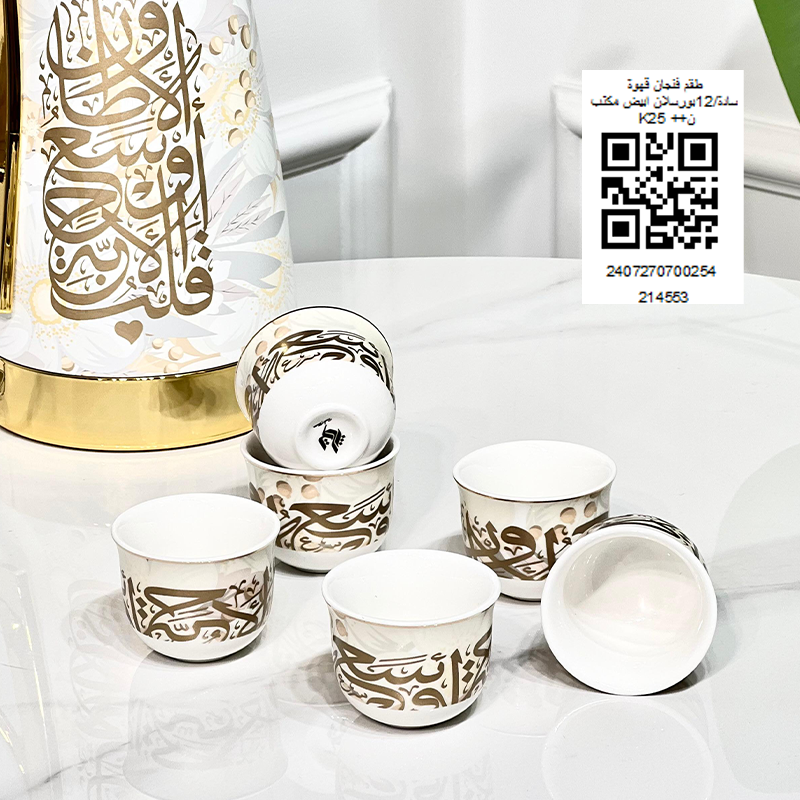 طقم فنجان قهوة سادة/12بورسلان ابيض مكتب K25 ++ن