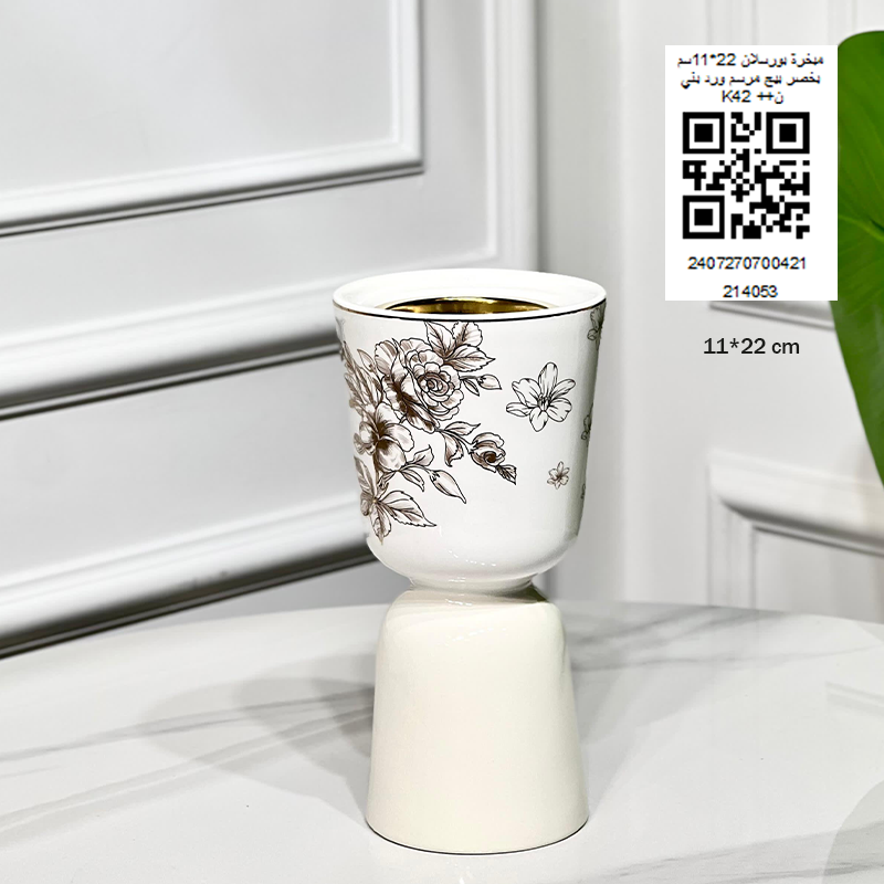 مبخرة بورسلان 22*11سم بخصر بيج مرسم ورد بني K42 ++ن