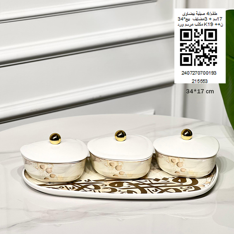 طقم/4 صينية بيضاوي 34*17سم + 3مضايف بيج مكتب مرسم ورد K19 ++ن