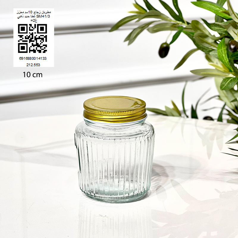 مطربان زجاج 10سم محزز غطا حديد ذهبي SM41/3 =غ2