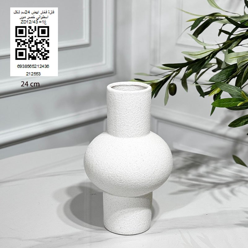 فازة فخار ابيض 24سم شكل اسطواني خصر مور ZD12/43 =غ1
