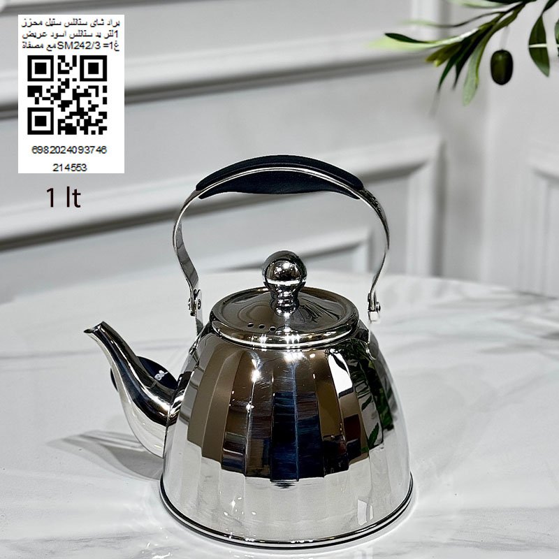 ابريق شاي ستانلس ستيل محزز 1لتر يد ستانلس اسود عريض مع مصفاة SM242/3 =غ1