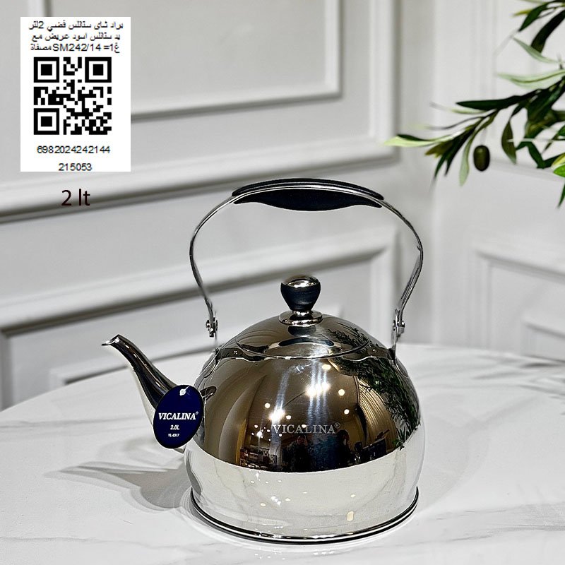 ابريق شاي ستانلس فضي 2لتر يد ستانلس اسود عريض مع مصفاة SM242/14 =غ1