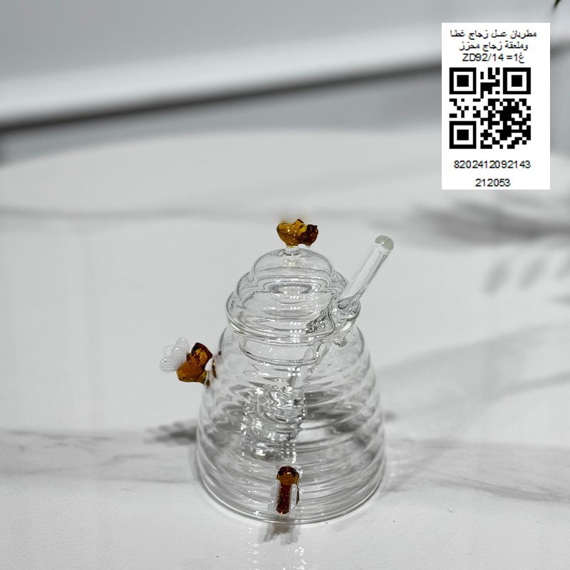 مطربان عسل زجاج غطا وملعقة زجاج محزز ZD92/14 =غ1