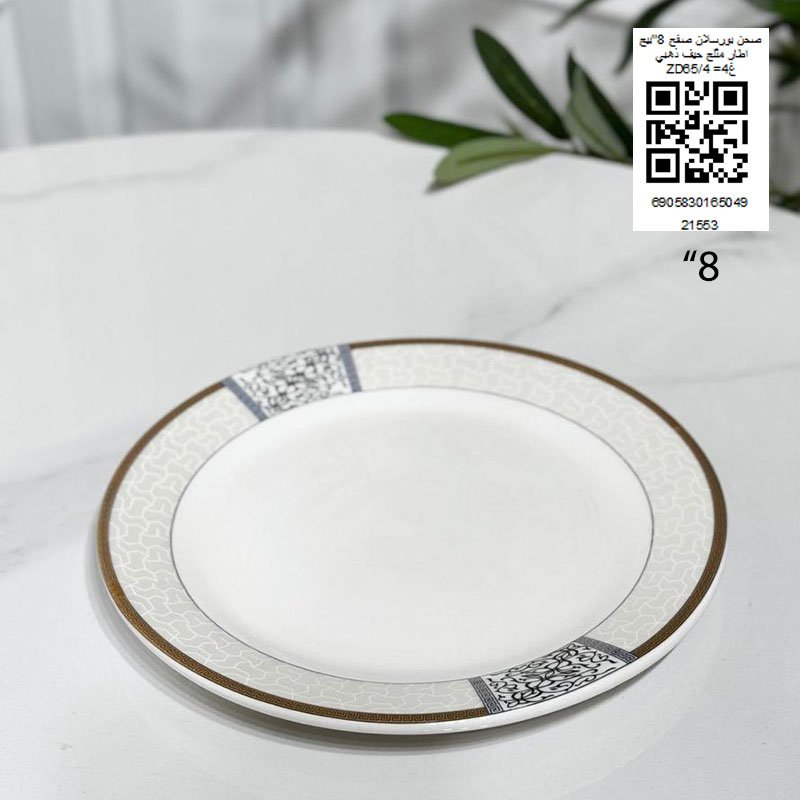 صحن بورسلان صفح 8"بيج اطار مثلج حيف ذهبي ZD65/4 =غ4