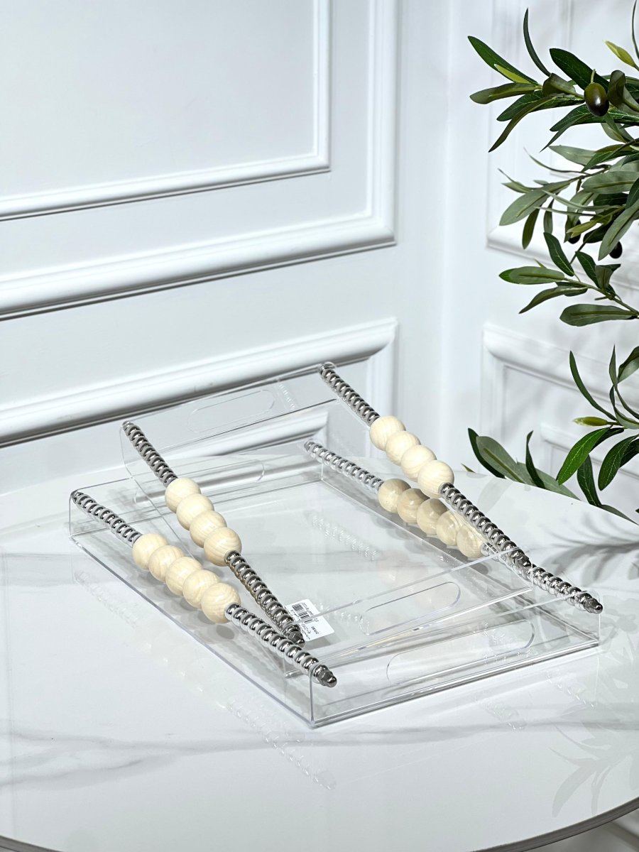 طقم /2 صواني اكرلك مستطيل 34+39سم جوانب كرات فضي و خشب ZD5/2 =غ4